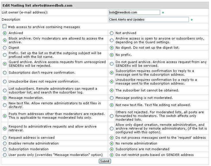 subscriber addresses and/or edit the texts that are sent in reply to list
